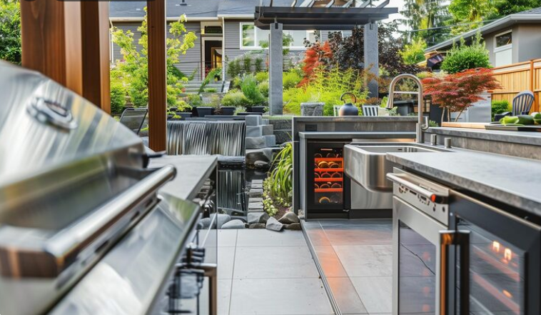 Food often becomes the highlight of any gathering. An outdoor entertainment area feels more lively when guests can enjoy fresh meals prepared nearby.